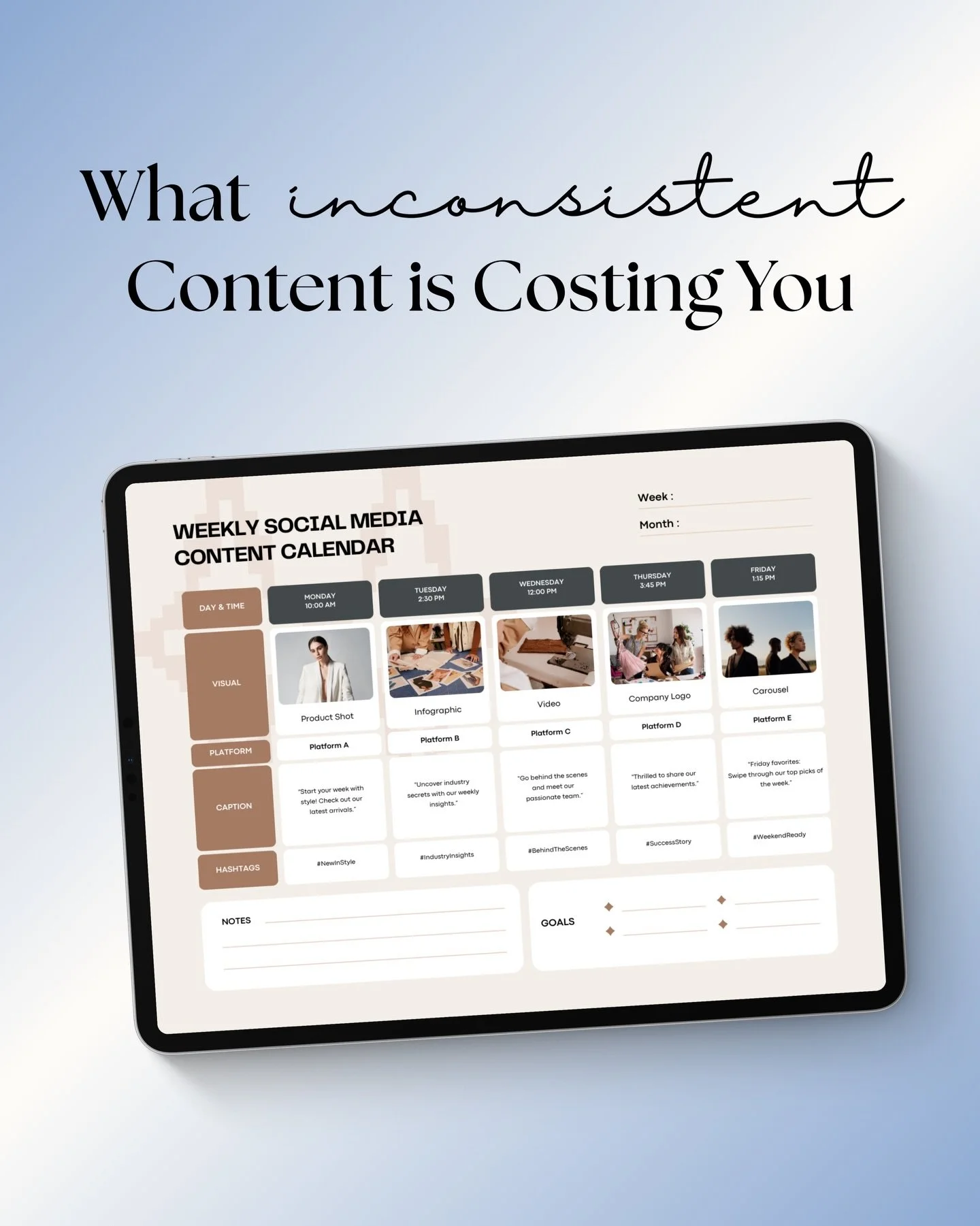 Third, you need alignment. Your Instagram, your website, your content, and your graphics should all feel like they belong to the same brand, not five different versions of you.